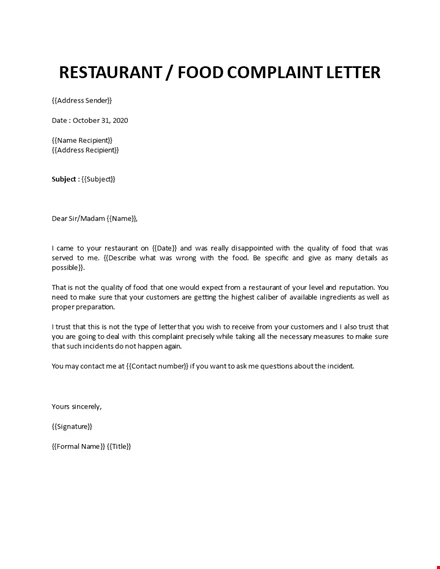 13 Restaurant And Hotel Complaint Letter Templates Pdf Doc Free Premium Templates